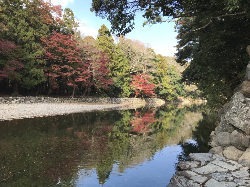 手水舎だけでなく、五十鈴川で手や口を清めるようにしています。