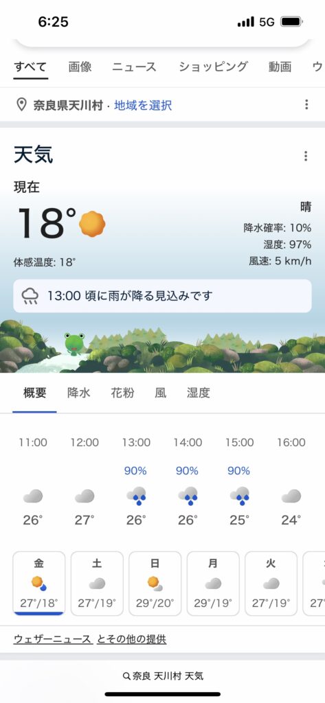 数週間前から毎日、天川村の週間天気予報をチェックしていましたが、曇り時々雨といった予報が続いていました。当日の天気も御祈祷を受ける時間に降水確率90%となっていました。